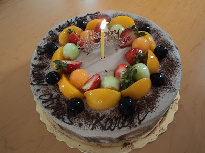 [生日蛋糕上有三位壽星的名子喔.....Happy Birthday to Chris(50th), Amy & Karen!]